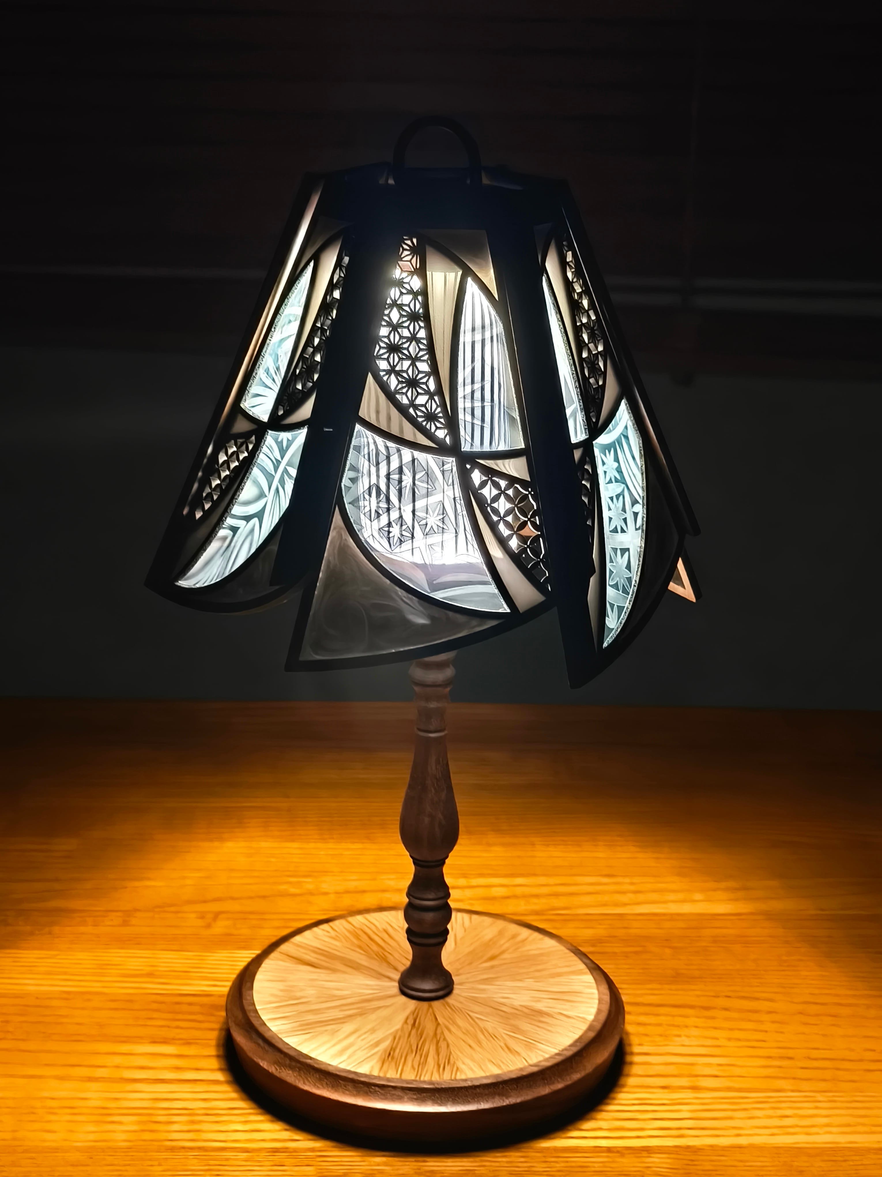 六角錐形の黒✕薩摩切子青緑色 組子柄