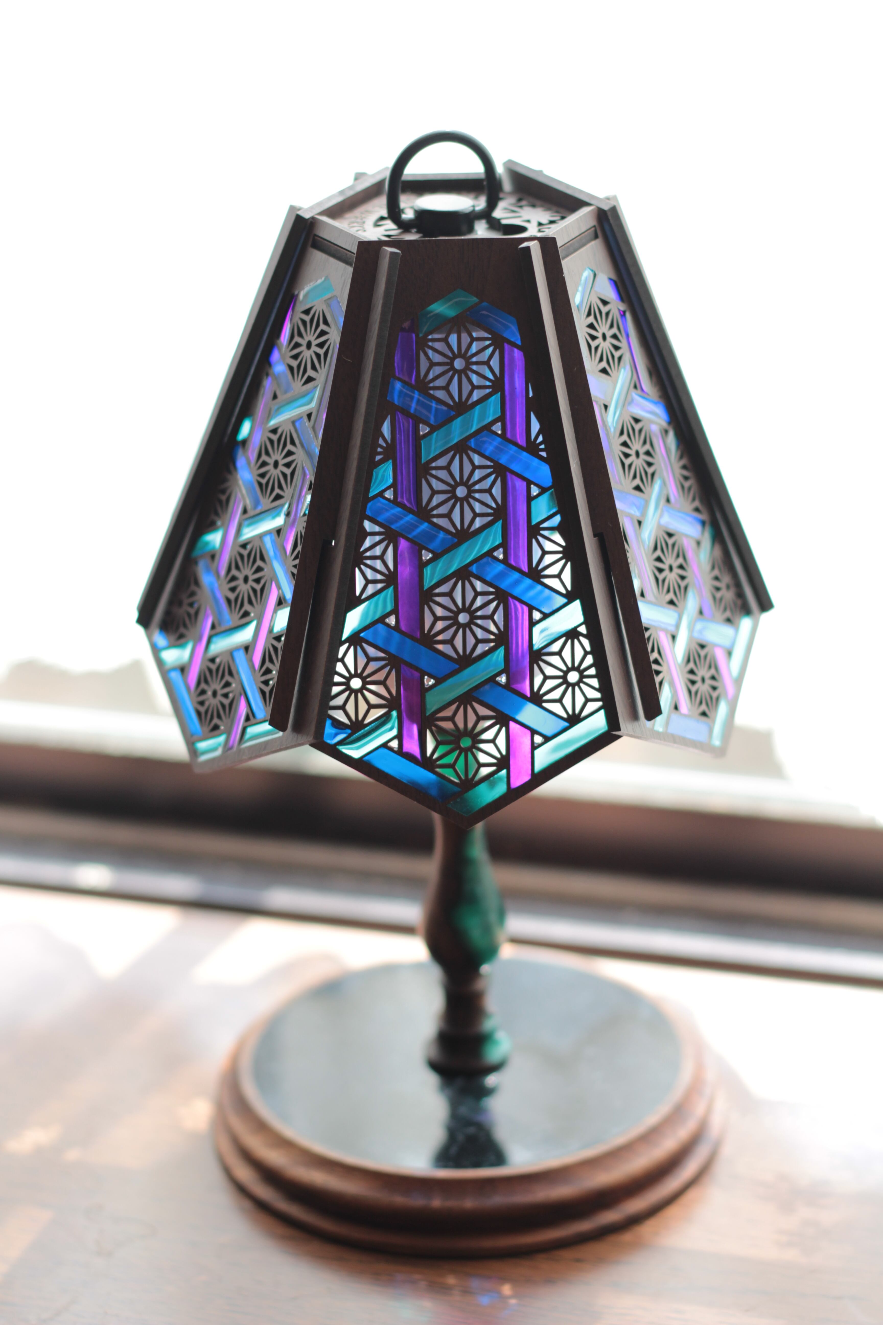 【組立式レジンシェード『&n』6+】青✕紫✕水色 籠目柄✕麻柄
